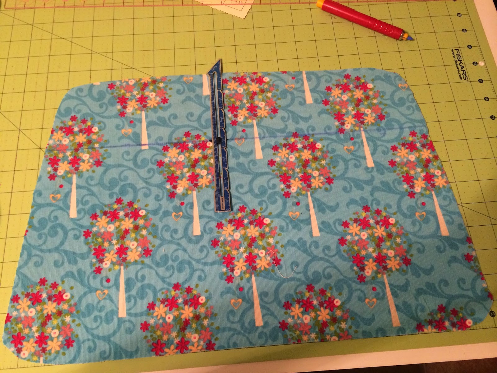 Measure down 3.5" from the top.  Draw a line across the right side of the fabric.