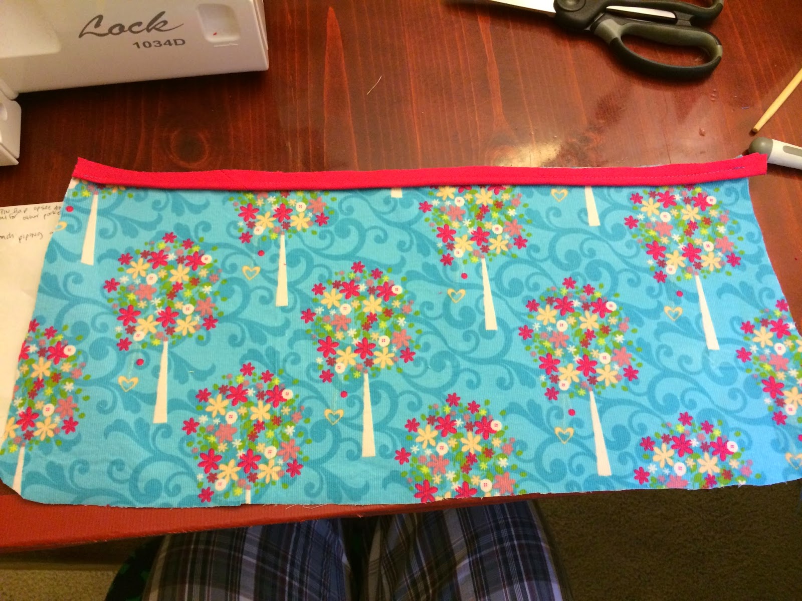 Pin piping to the top of one of the pocket pieces, matching raw edges.