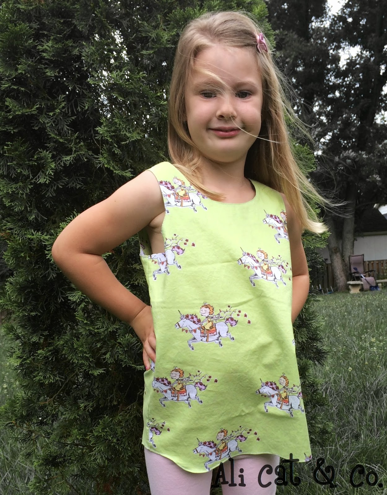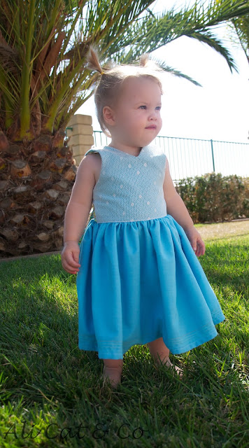 I posted awhile back out the Norah Dress for Madeleine.  Ali likes twirly tutus.  I was lucky enough to pre-test Mouse House Creations coming soon pattern, the Caroline Dress.